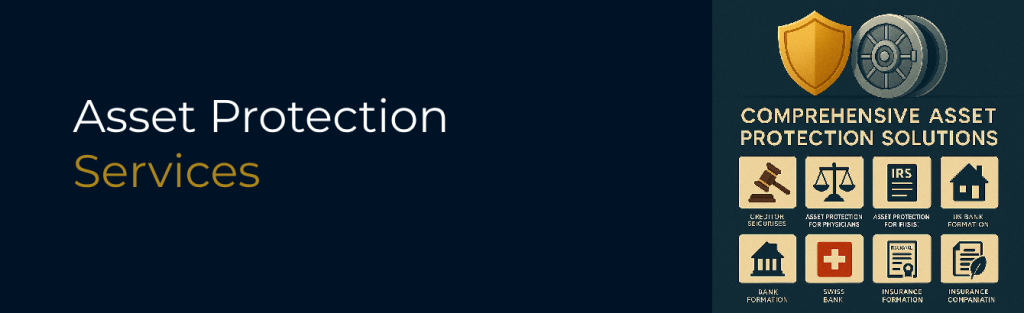 Services Lawsuits Against Your Business Read More Lawsuits Against You Read More IRS and Asset Protection Read More Creditor Seizers Charging Orders Read More Asset Protection From Mortgage Defaults Read More Asset Protection For Physicians Read More Offshore Asset Protection Trusts Read More US Bank Formation Read More 501 C Charitable Foundations Read More Charitable Remainder Trusts(CRTs) Read More Swiss Bank Accounts Read More Insurance Company Formation Read More GET IN TOUCH FOR MORE INFORMATION PLEASE CONTACT ASSET PROTECTION, INC. ASSET PROTECTION, INC.Call: 714-330-6705 Contact us